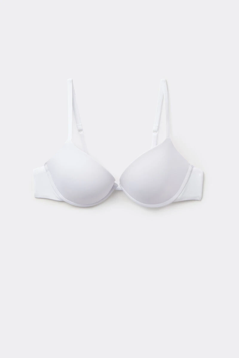 Bellissima push-up bra with underwire and lightly padded cups lined in cotton. The cups envelop the bust from the side and model the décolletage with a slight push-up effect. Crafted from soft microfibre. The straps are covered in microfibre and are adjustable at the back.