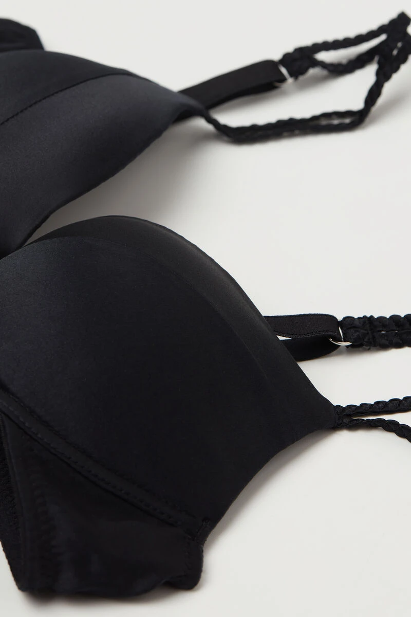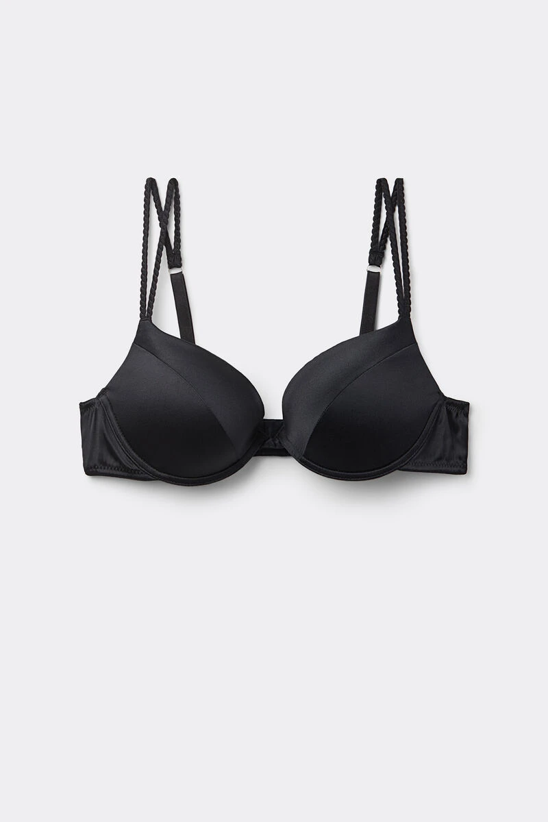 Bellissima slightly padded underwired push-up bra, styled in silk. Featuring elegant braided double shoulder straps and imperceptible stitching. Ideal for those who want a natural shape and light support in a simple, yet luxurious and refined bra. Adjustable back and straps.