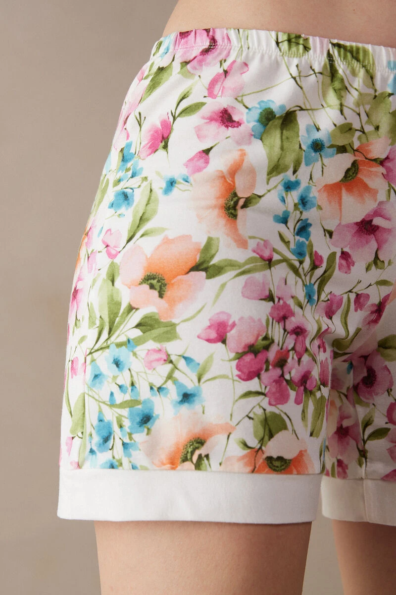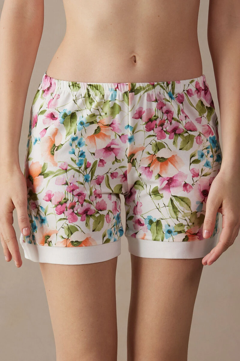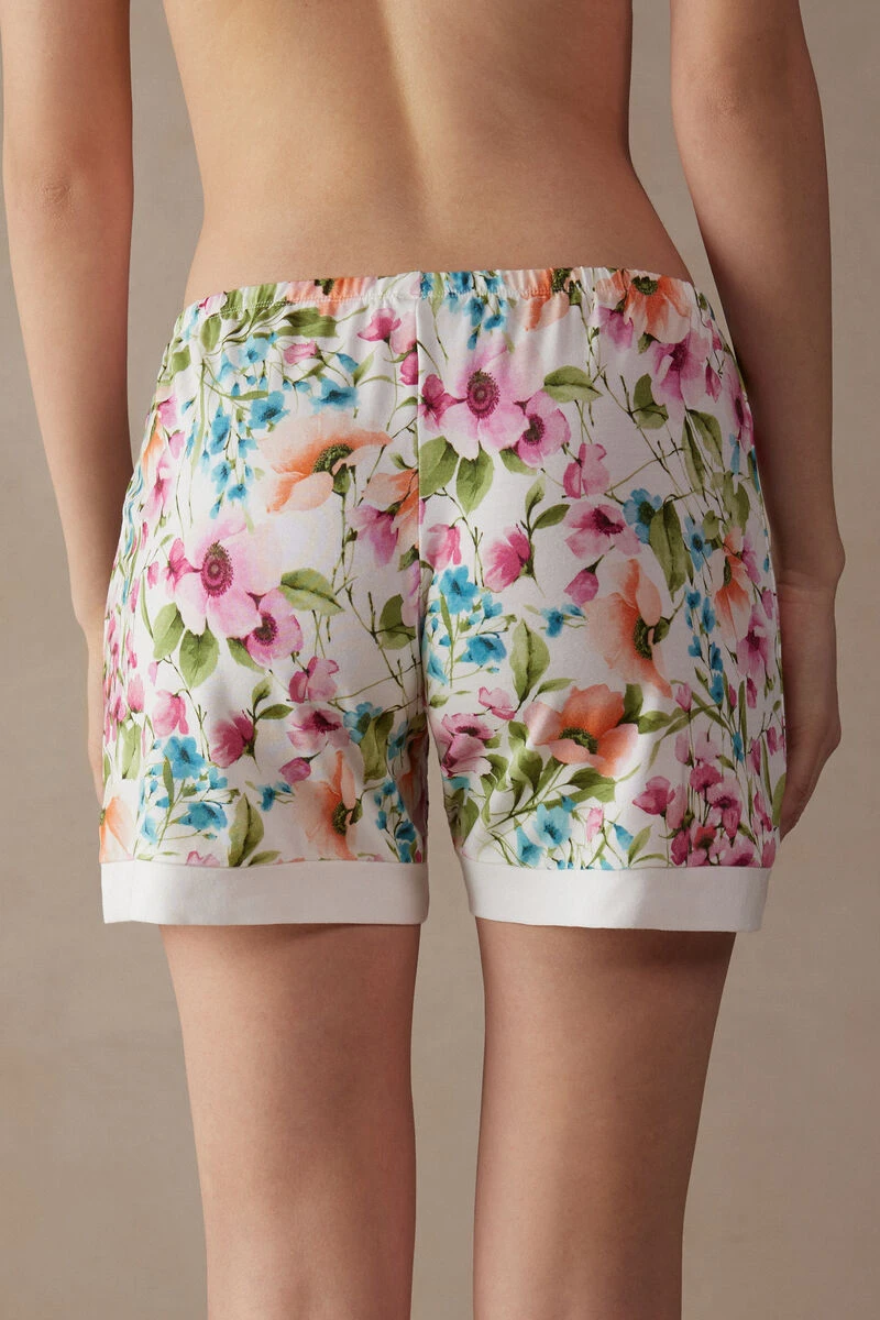 Multicolour floral-print modal jersey shorts with contrast trim. Regular fit.