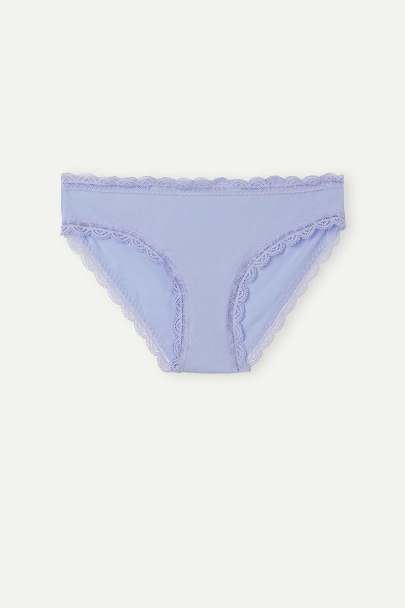 Briefs trimmed with a romantic lace frill. Perfect for anyone looking for simple, romantic and comfortable underwear. 100% cotton gusset.