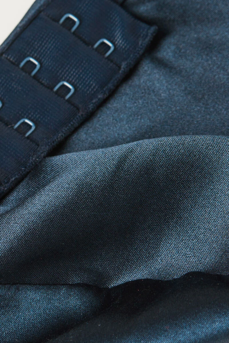Emma unpadded wireless triangle bra styled in silk. Featuring elegant braided double shoulder straps and imperceptible stitching. The cups are fully lined, ensuring light support ideal for those after a simple and refined look. Adjustable back and straps.