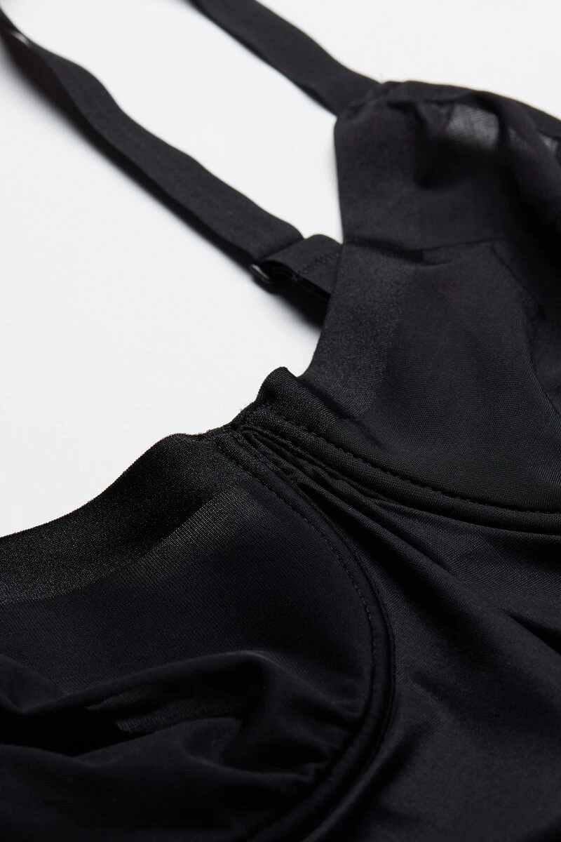 Balconette body with Sveva cups in soft tulle-effect fabric and back fastening. Unpadded underwired cups. Featuring a raw-cut finish and flat, seamless and completely adjustable shoulder straps. Pure cotton inner gusset and press-stud fastening.