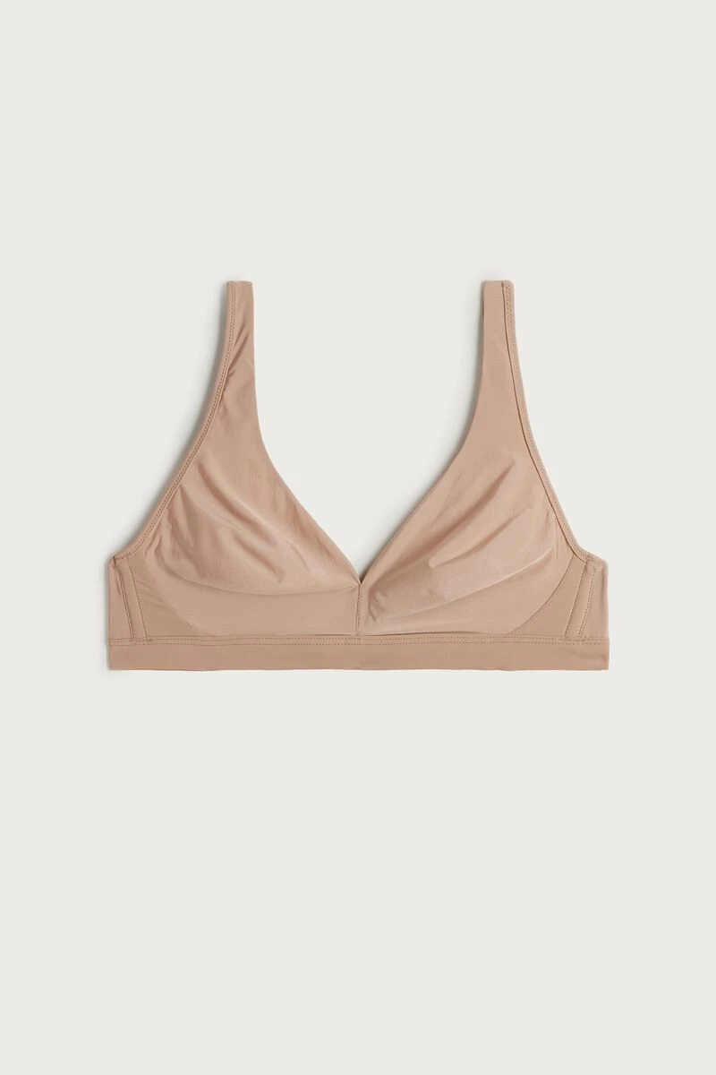 Lara non-wired triangle bra in ultralight microfibre, with boning at the sides. Moulded double-layered cups that continue into the shoulder straps. The shoulder straps can be hooked together at the back for a more sporty effect or to wear the bra under particular items of clothing.