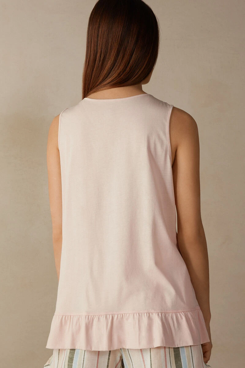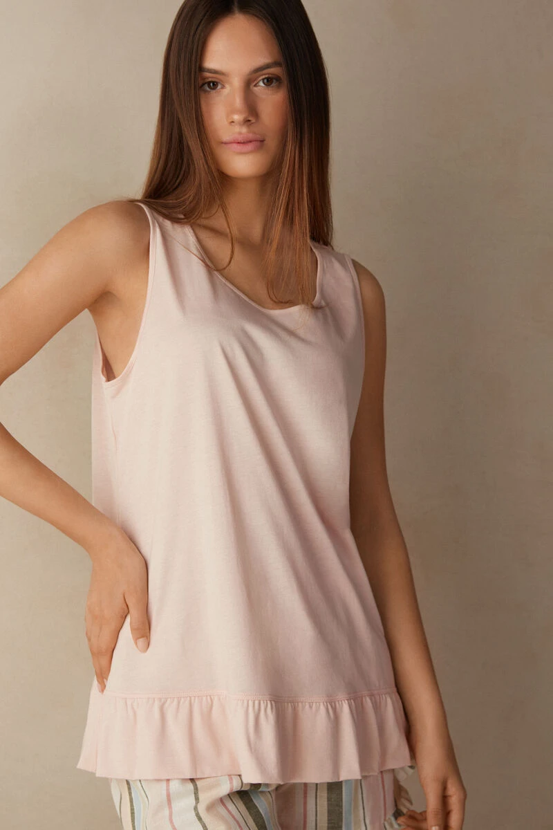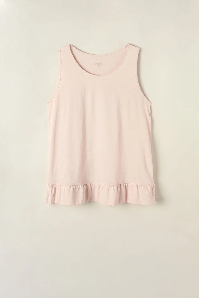 Ultrafresh Supima® cotton vest with wide straps and round neckline. A-line cut with flared ruffle at the hem. Relaxed fit.