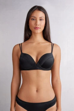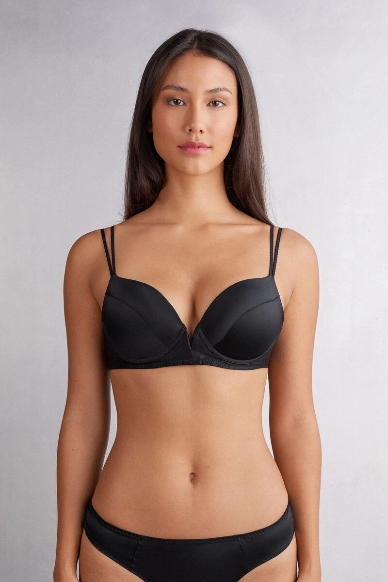 Mia super push-up bra with deep V neckline styled in silk. Perfect if you want to create fuller cleavage with a feminine and elegant bra. Adjustable back and straps.