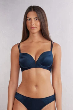 Mia super push-up bra with deep V neckline styled in silk. Perfect if you want to create fuller cleavage with a feminine and elegant bra. Adjustable back and straps.