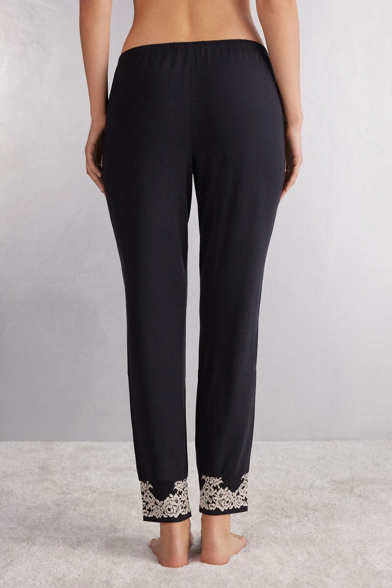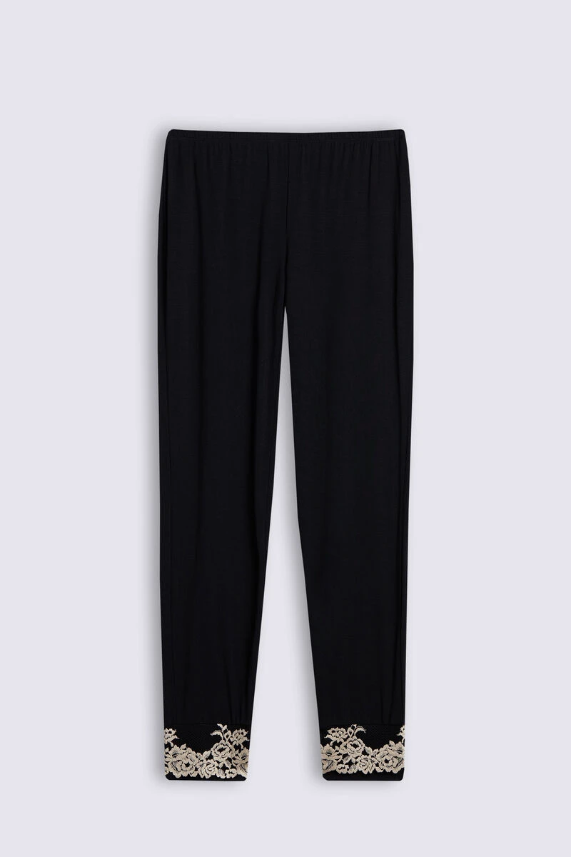 Full-length trousers in modal with deep cuffs on the ankle, embellished with a two-tone lace frill. Regular fit.