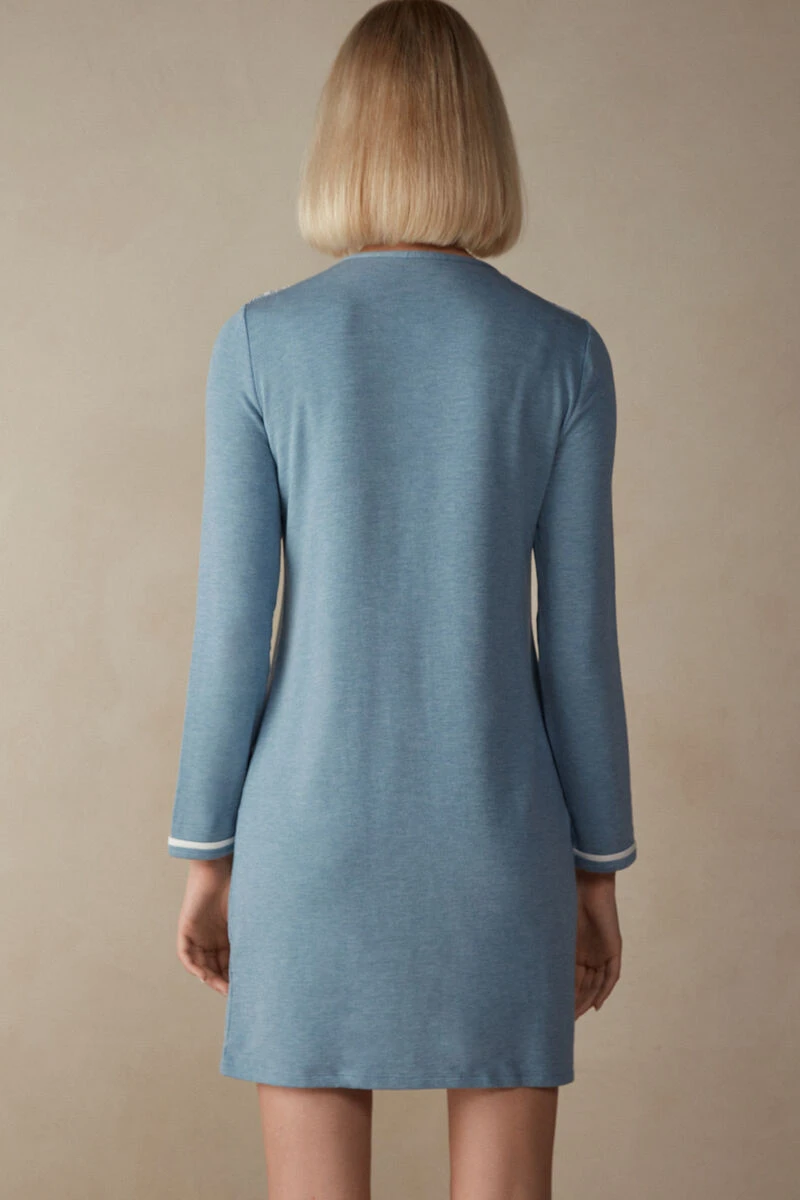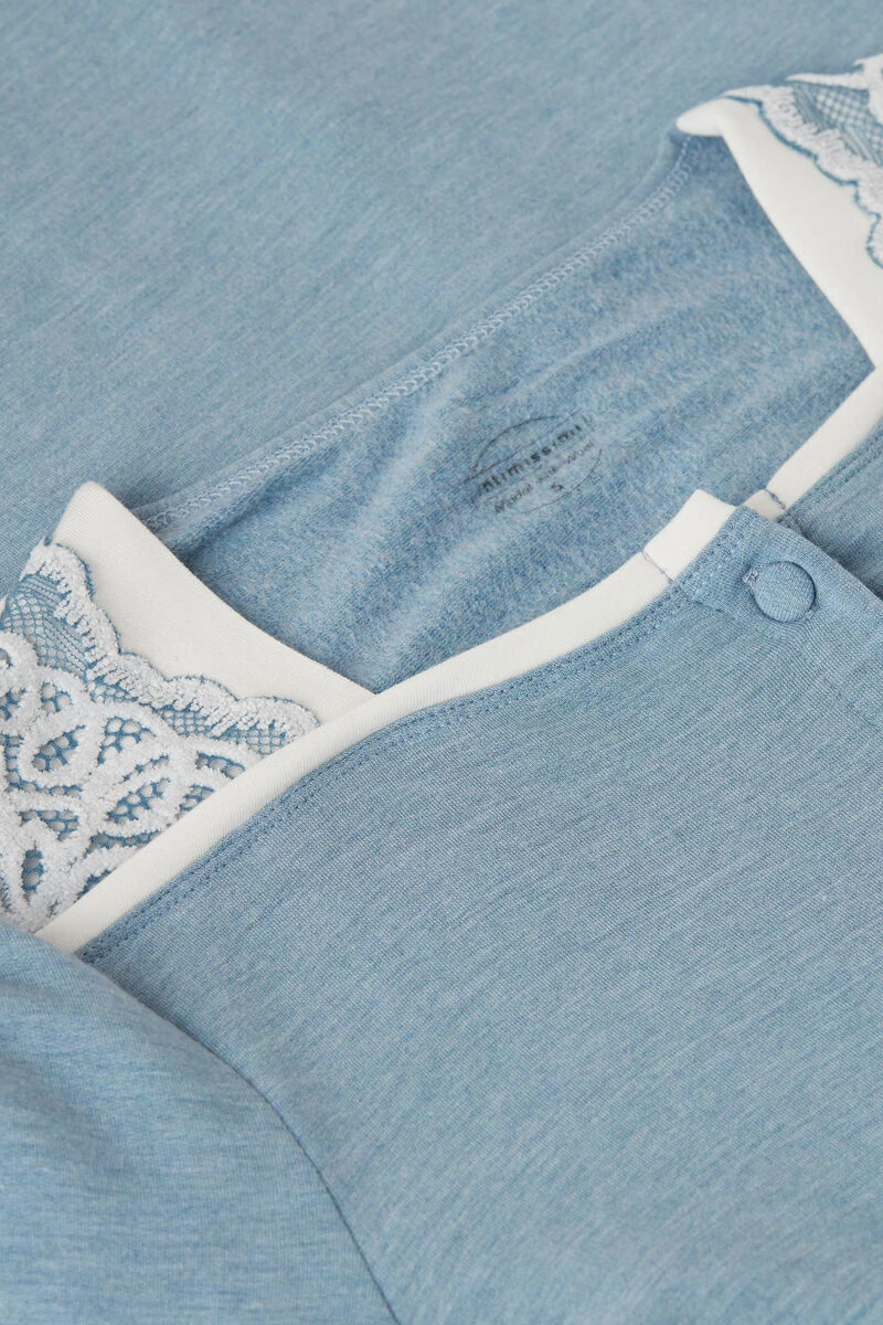 Long-sleeved button-down nightdress with square neck. Contrasting-colour trim and romantic two-tone lace details with a chenille effect. Covered buttons. Relaxed fit.