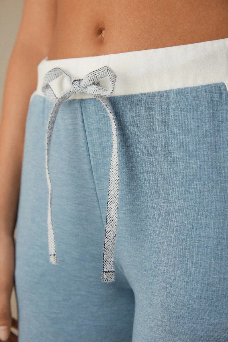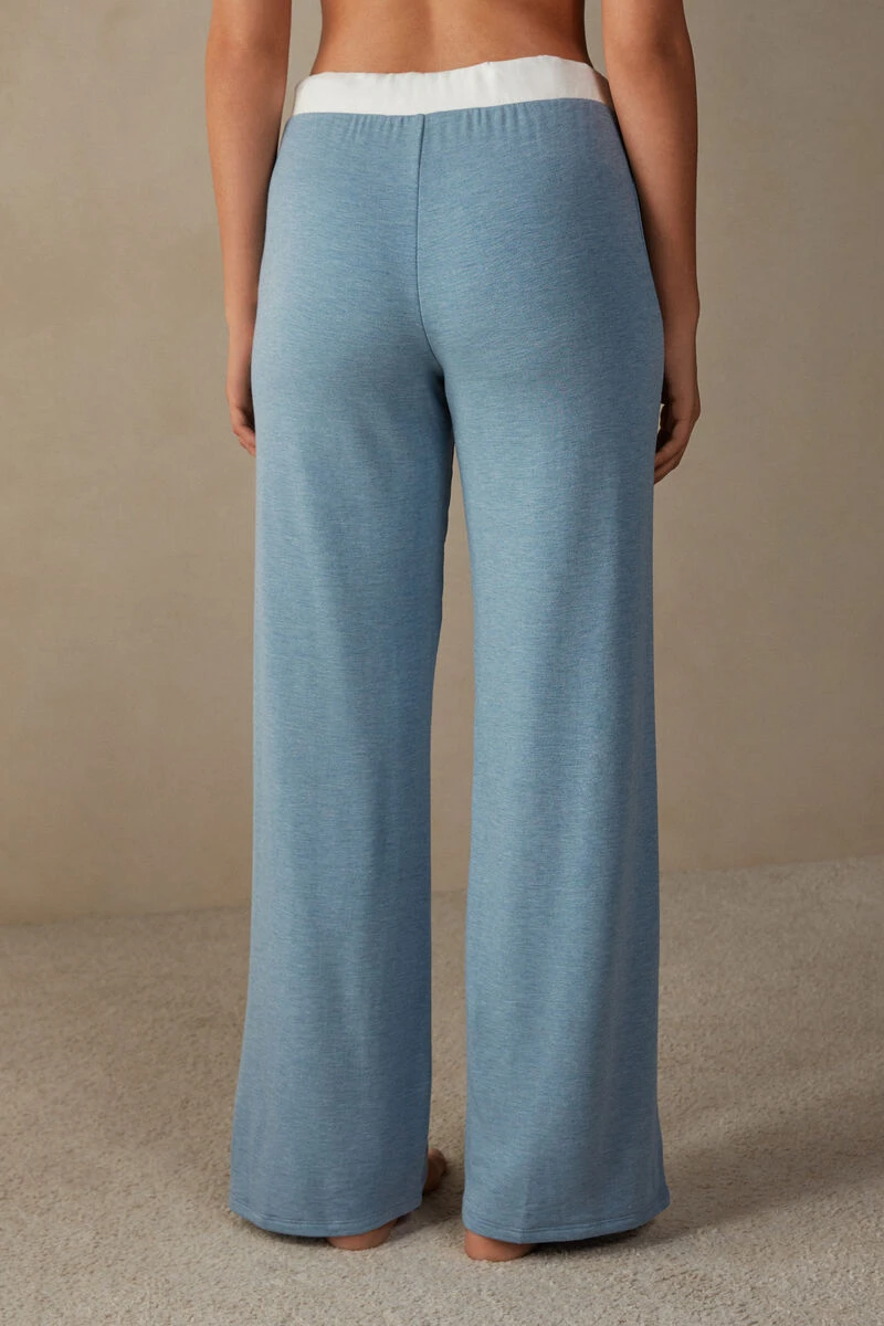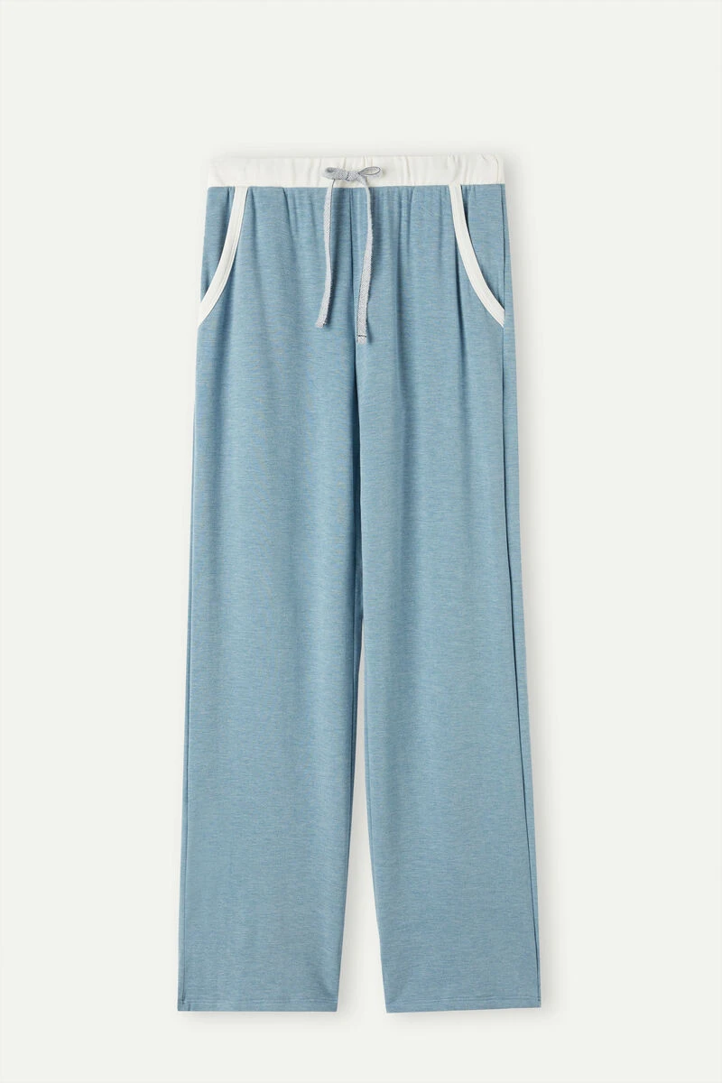 Full-length palazzo trousers crafted from soft and warm modal fleece with wool, detailed with contrasting-colour trim. Drawstring waist and front pockets. Relaxed fit.