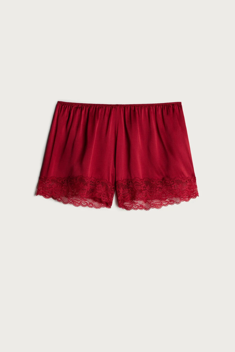 Silk shorts with lace trim. The model is 179 cm tall and wears size S.