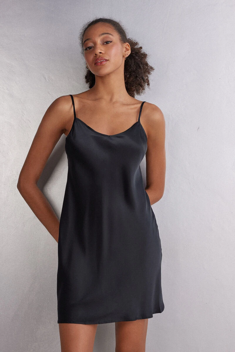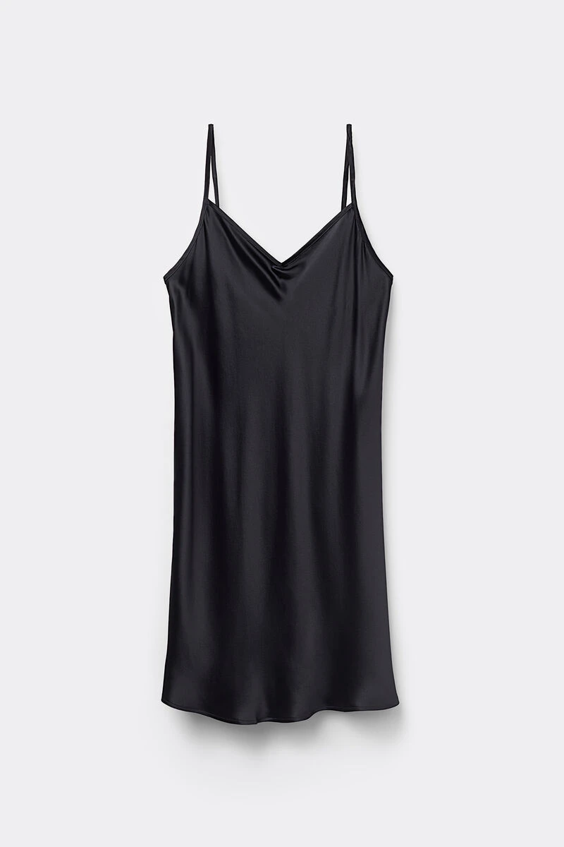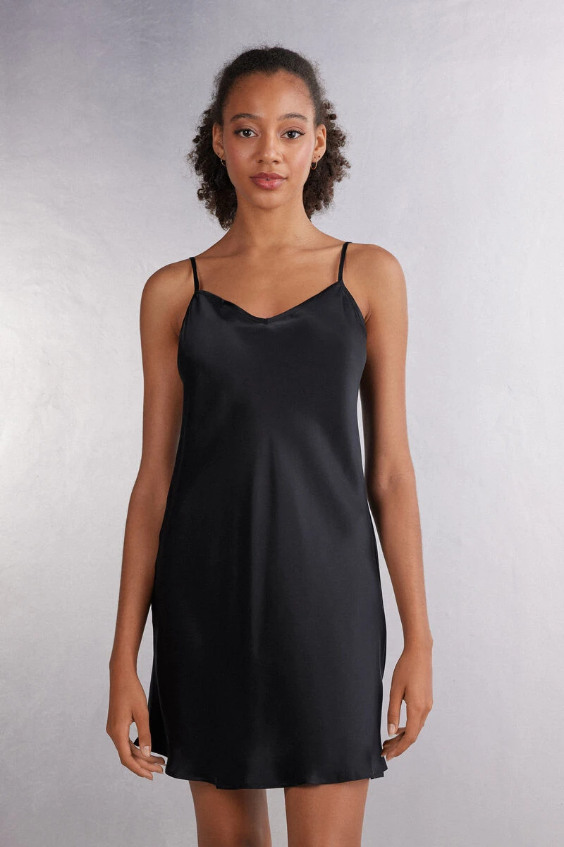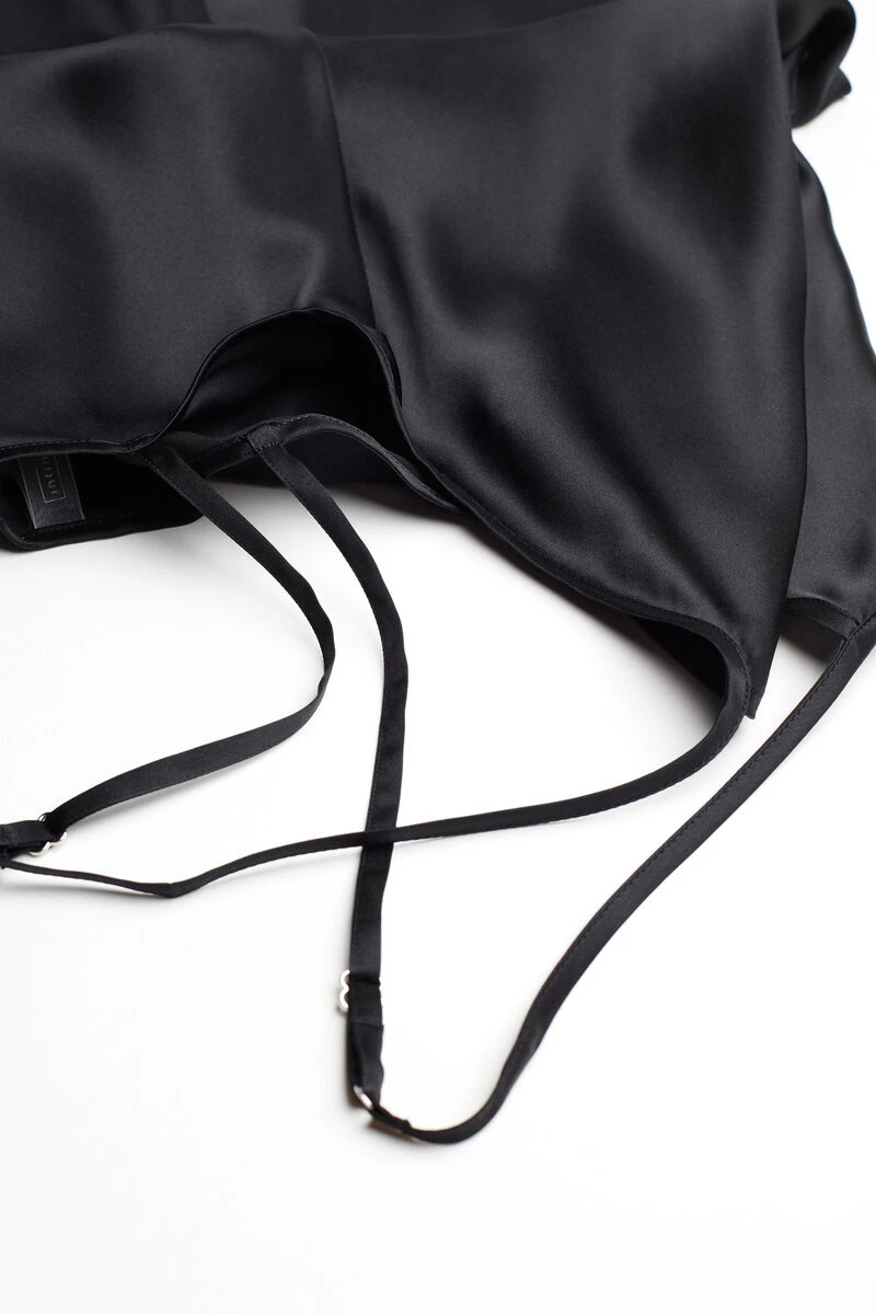Smooth silk slip with adjustable, skinny straps and a subtle V-neck. Perfect worn under dresses for a sleek silhouette. The model is 179Â cm tall and wears size S.