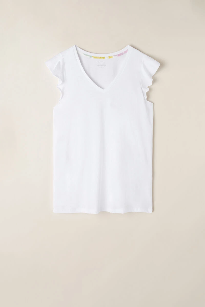 Sleeveless Ultrafresh Supima® cotton top with V neck and cap sleeves. Embellished with romantic internal floral-print trim. Regular fit.