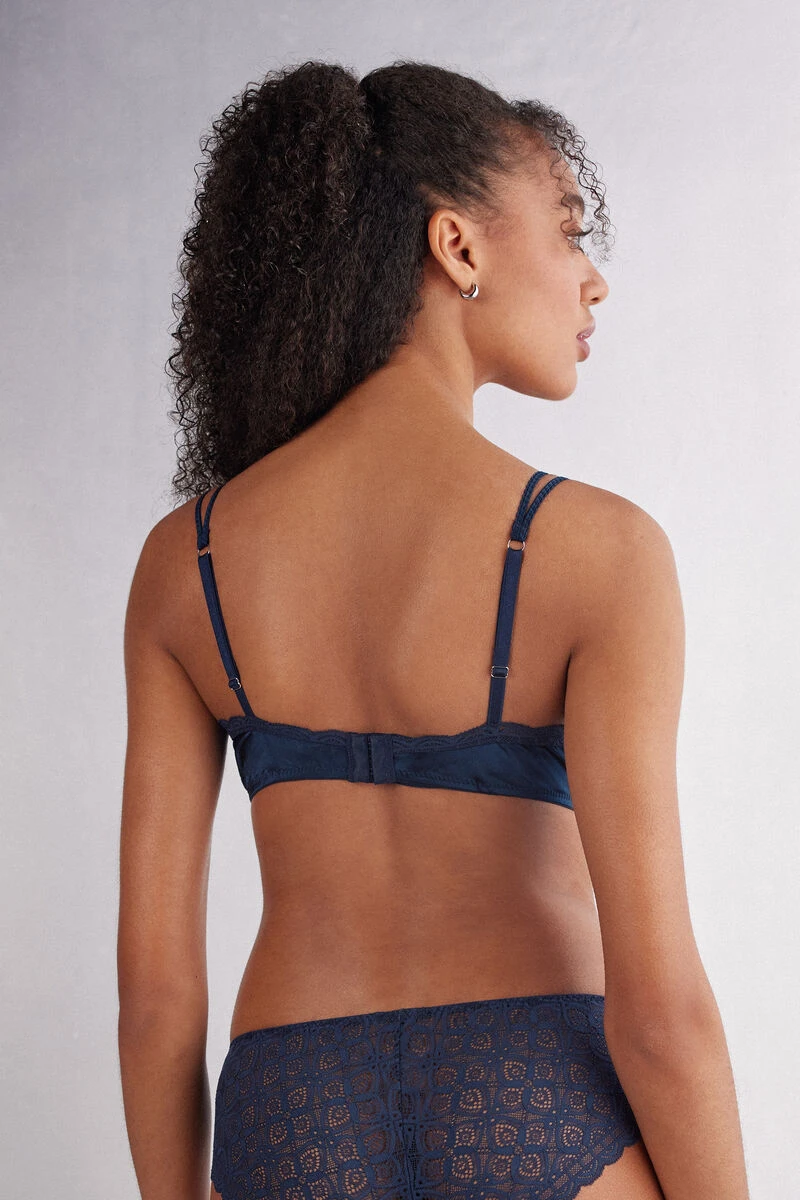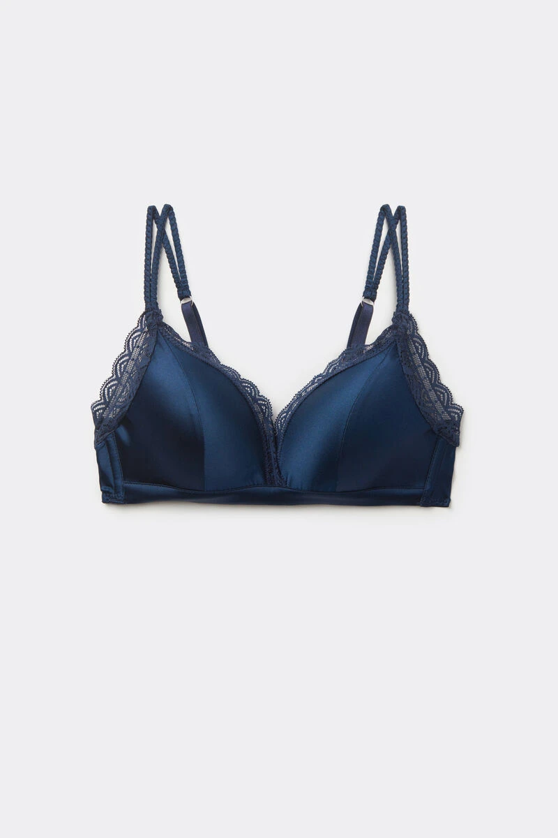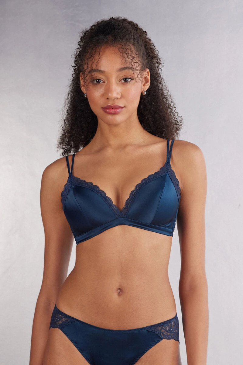 Tiziana wireless triangle bra, slightly padded, styled in silk and lace. Adjustable back and straps.