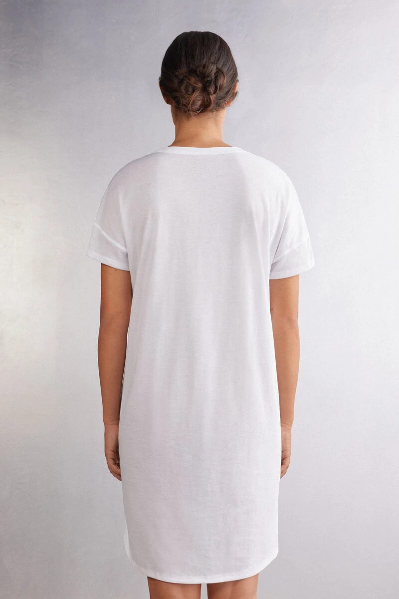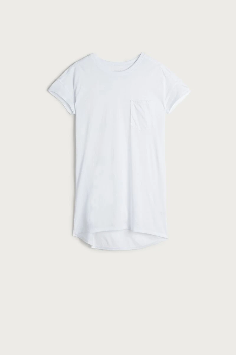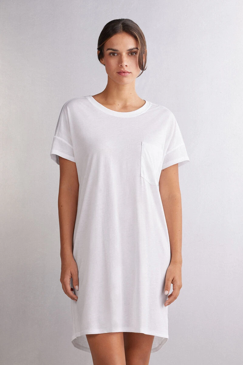 Short-sleeved ultrafresh Supima® cotton nightdress with breast pocket. Lightweight and comfortable fabric.