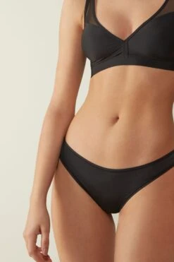 Ultralight microfibre Brazilian briefs with flat seams, double-layered on the back. 100% cotton gusset.